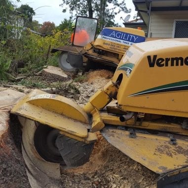 Stump grinding is an additional cost to a tree removal procedure. If you wish to have your stump grinded following a tree removal, our professionals at Agility Trees will quote you the price of both the tree removal and stump grinding services. We do require the use of the stump grinder, and need to bring it along for stump grinding. For this reason, stump grinding can be part of an entire job or a separate job, depending on the initial quote.